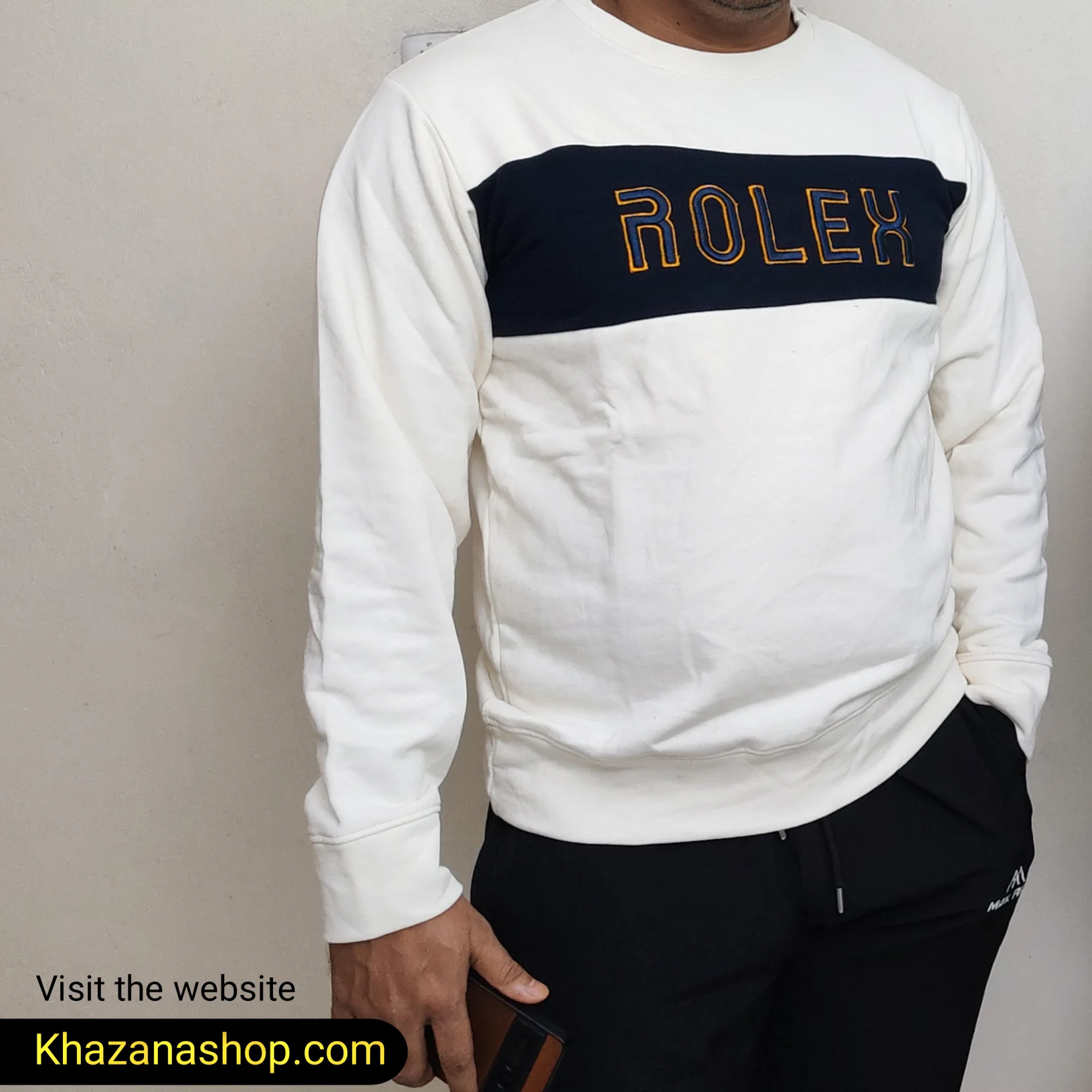 🌟 প্রিমিয়াম কোয়ালিটির সোয়েটার! 🌟 এই অসাধারণ সাদা রঙের সোয়েটারটি ডিজাইন করা হয়েছে আধুনিক ফ্যাশন সচেতন মানুষের জন্য। নেভি ব্লু কালারের ব্যান্ডে কনট্রাস্ট Rolex লেখাটি আপনার লুকে যোগ করবে একটি আভিজাত্যের ছাপ। * কালার: ক্লাসিক সাদা (নেভি ব্লু ও গোল্ডেন কনট্রাস্ট)। * ফেব্রিক: নরম, উষ্ণ এবং আরামদায়ক ফ্লিস/উলের মিশ্রণ। * ডিজাইন: রেগুলার ফিট, রাউন্ড নেক এবং লং স্লিভস। * স্টাইল টিপ: কালো বা নেভি ব্লু ট্রাউজার্সের সাথে পারফেক্ট। স্টক সীমিত! আপনার সাইজটি অর্ডার করুন আজই!”